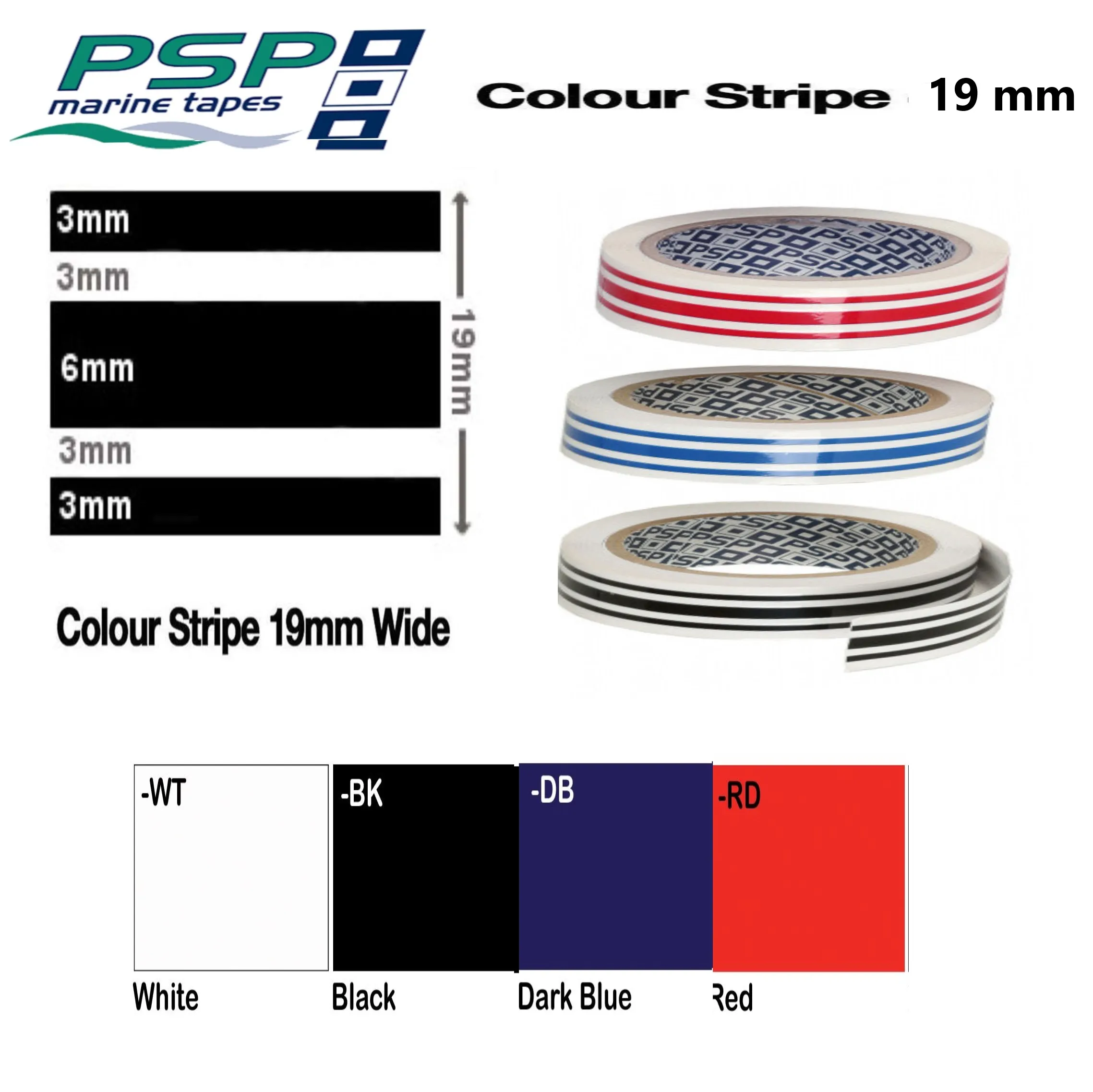 La cinta PSP Color Stripe de 19 mm se produce para soportar el duro entorno marino.