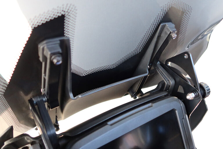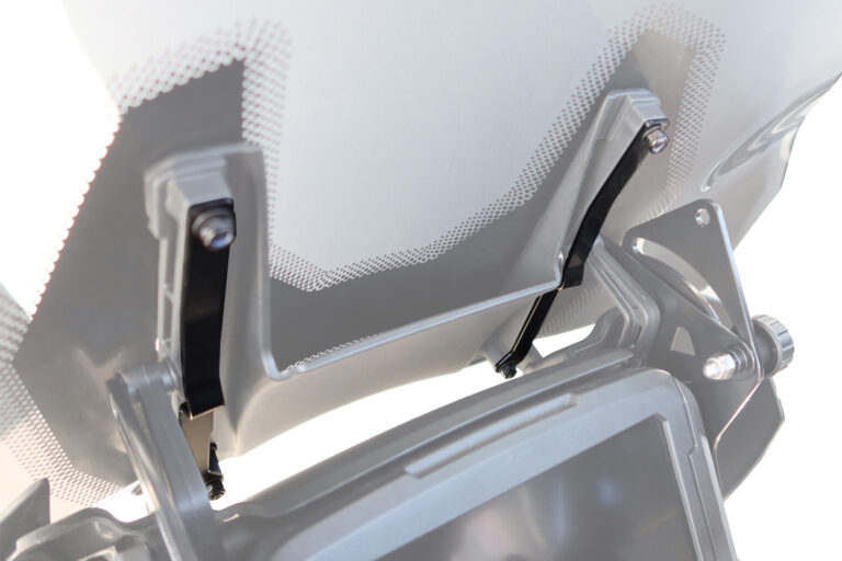 La cúpula de serie de la Harley-Davidson Pan America 1250 y la Special se monta con un marco auxiliar. En este proceso, la cúpula se atornilla en un total de cuatro puntos con el soporte de altura regulable de cúpula de la Pan America.