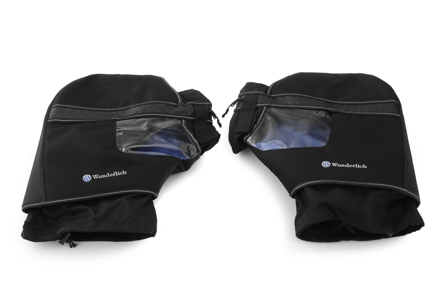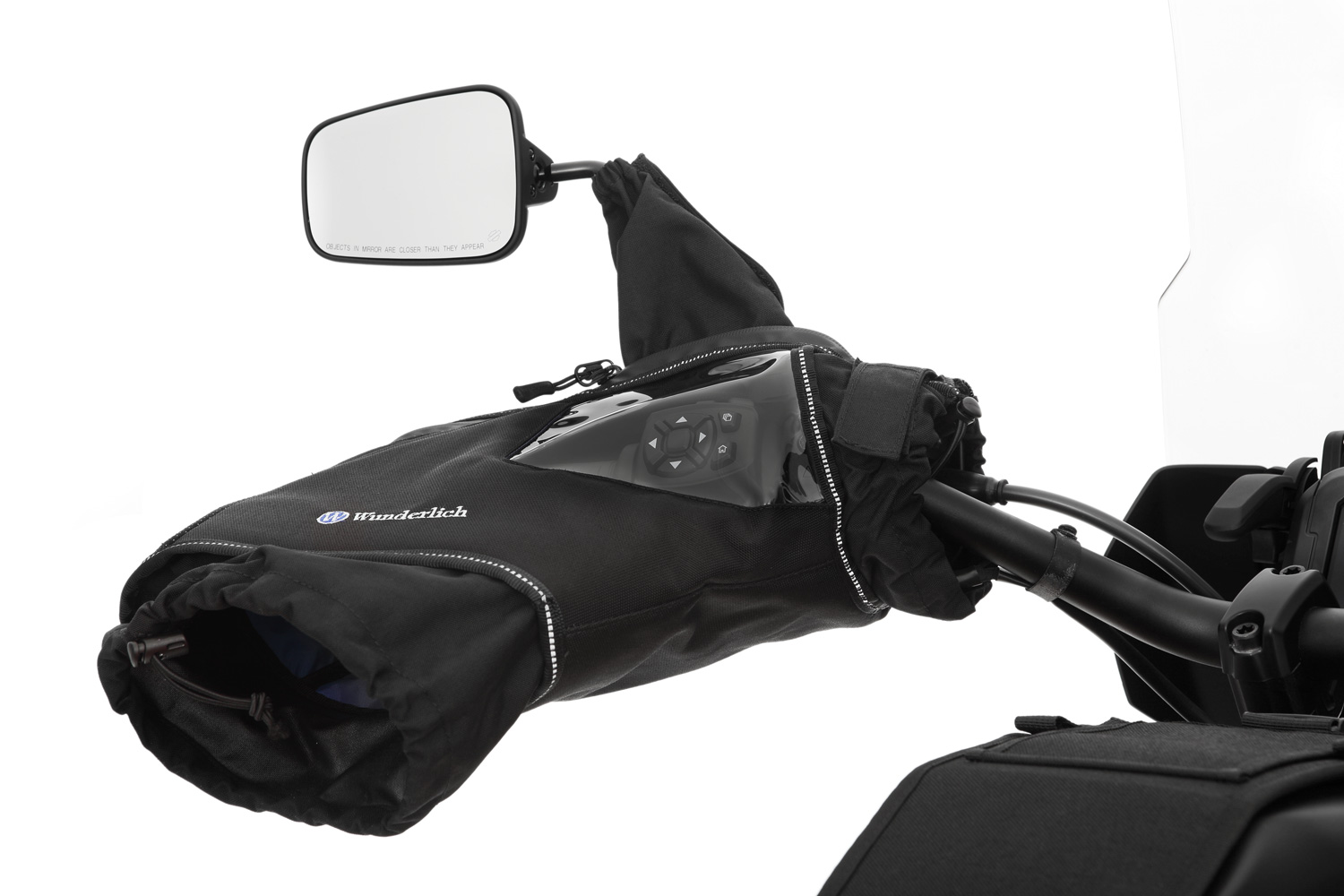 Estas manoplas están fabricadas con tejido CORDURA® de alta calidad, que es hidrófugo y resistente a la suciedad. Son fáciles de colocar sobre los puños izquierdo y derecho del manillar y se cierran herméticamente gracias a su cremallera y cinta de autocierre de gancho y bucle. Además, tienen aberturas que se pueden cerrar con un cordel elástico, garantizando un aislamiento térmico óptimo.