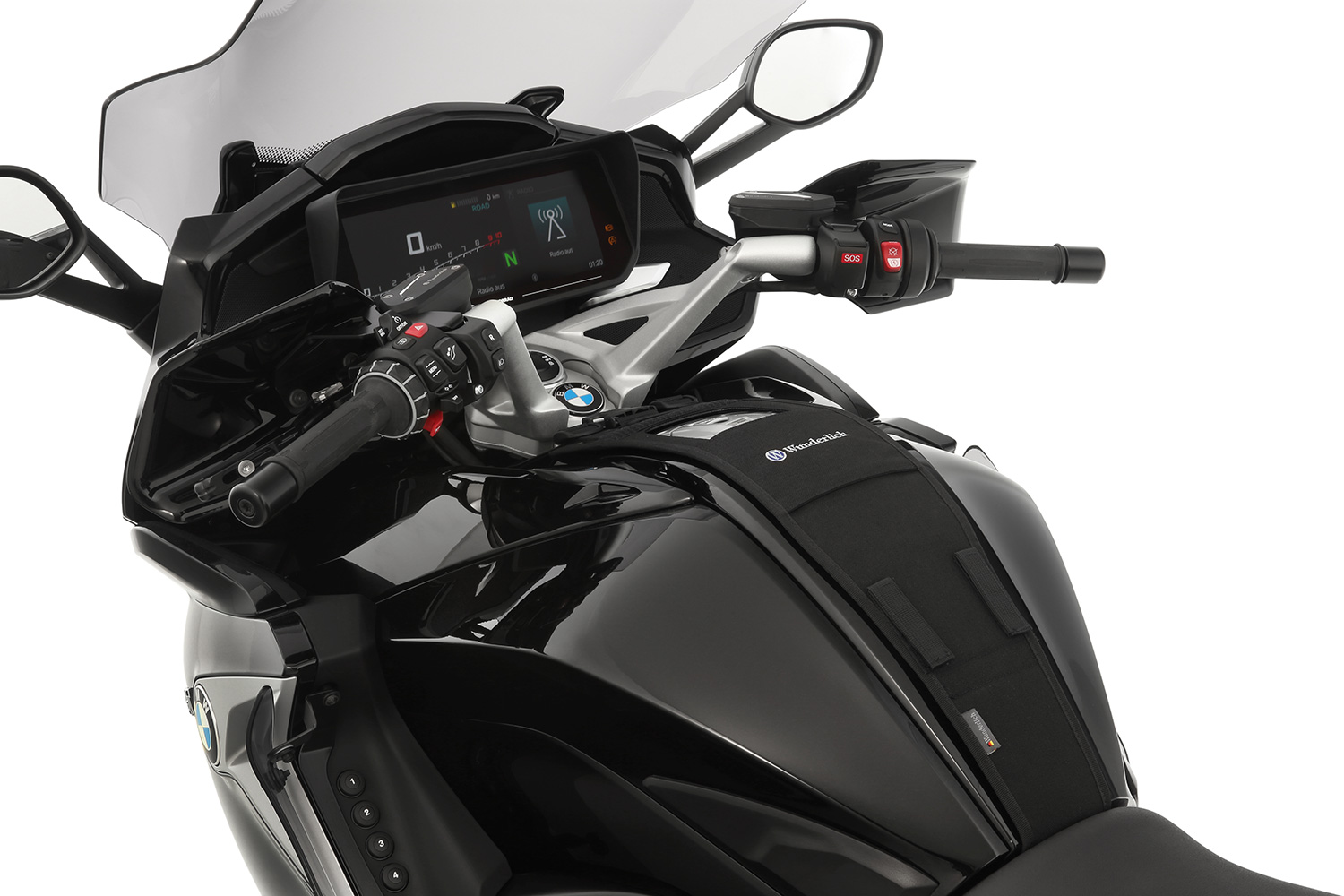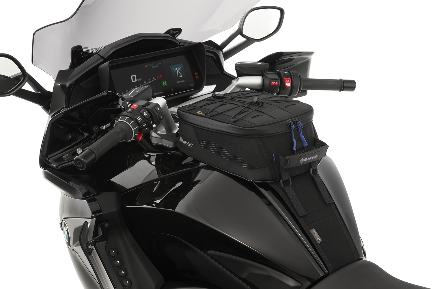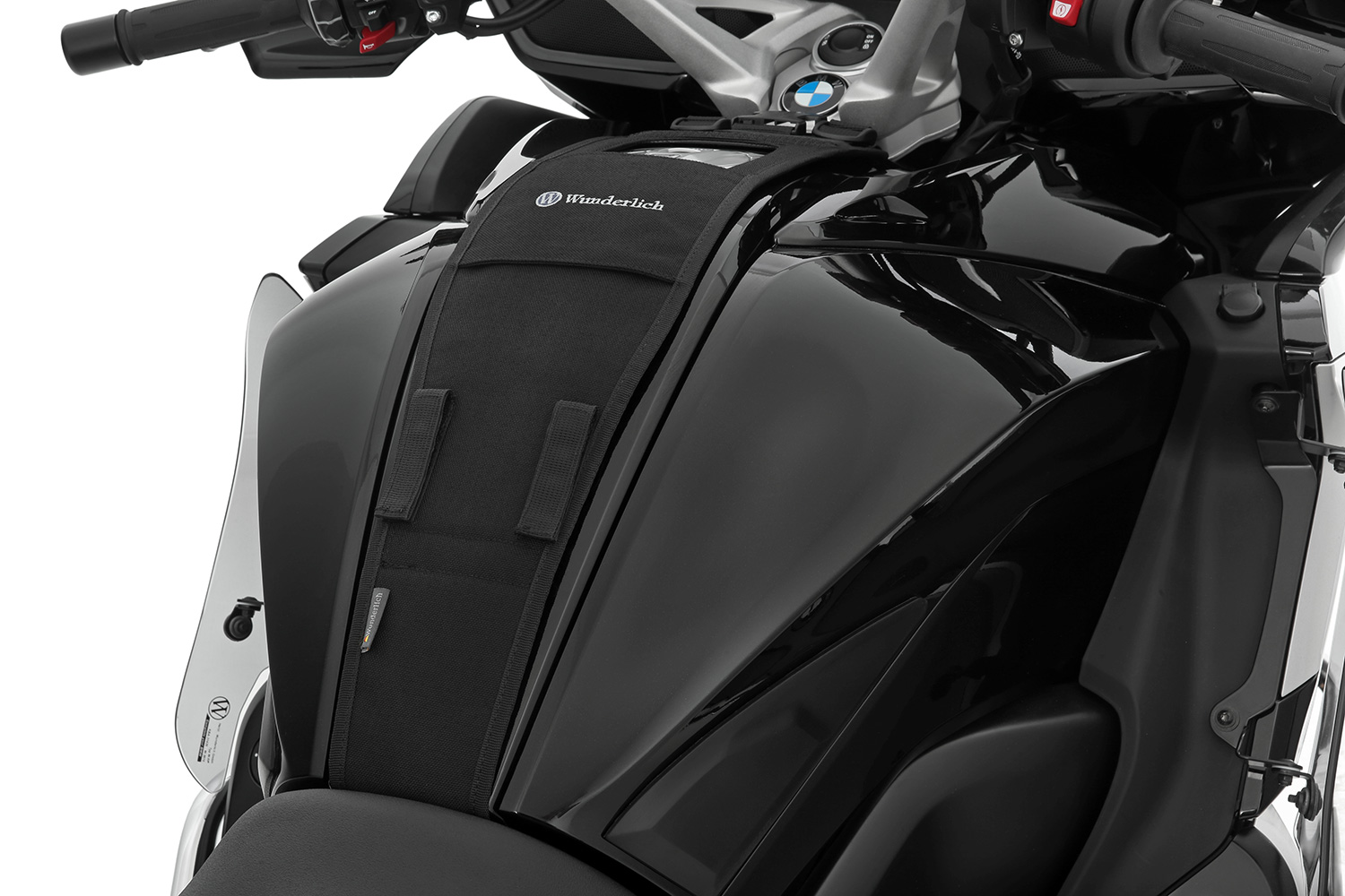 El sistema modular de sujeción se fija al vehículo con unas pocas maniobras y sujeta la bolsa sobredepósito por medio de una fijación rápida. Simplemente desplace la lengüeta de sujeción de la bolsa sobredepósito a través del alojamiento del sistema de sujeción y cierre por delante. Una simple y fantástica fijación rápida que permite un montaje y desmontaje en cuestión de segundos incluso con guantes y dedos húmedos.